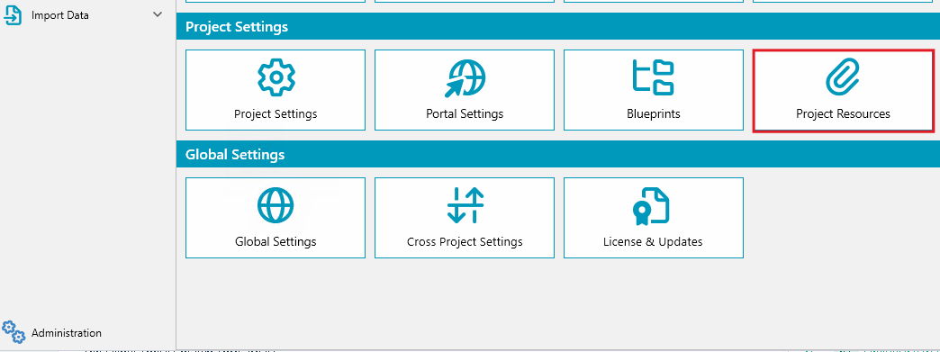 Project resources are files required to complete specific tasks within a project. The Project Resources page in the Administration section provides a central location where administrators can upload and manage files, such as images for email templates or document attachments.
