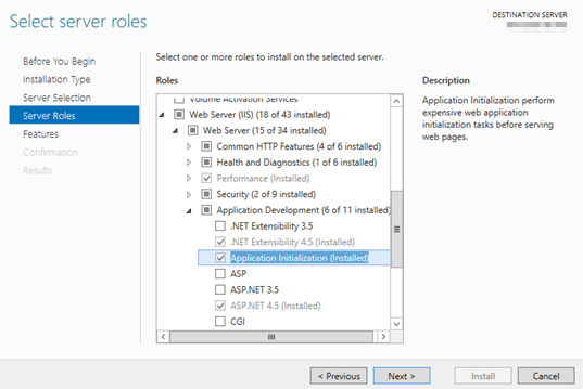Server Roles→Web Server (IIS)→Application Development. - Ensure the