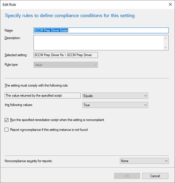 The baseline will reevaluate after the remediation script runs to check if the Prep Driver has been successfully installed.