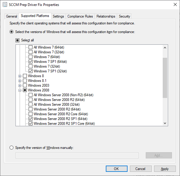 Limit the Configuration Item to run only on Windows 7 SP1 and Windows Server 2008 R2 SP1 clients, as these are the only affected operating systems.