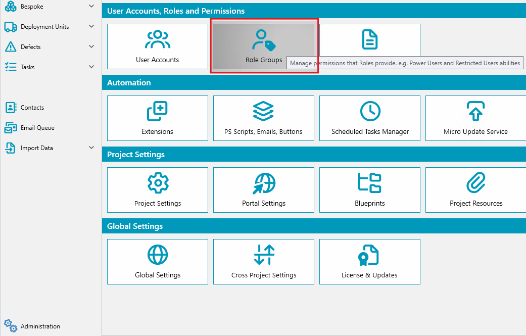 | Manage Role Groups | Manage user role groups in Admin section. |