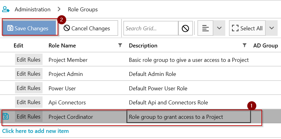 Save Changesto finalise the new role group.