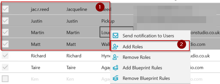 - Select the user or multiple users (use