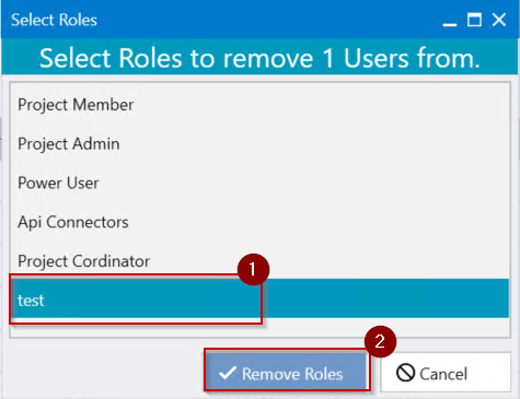 - Select the roles you wish to remove from the user(s), then click