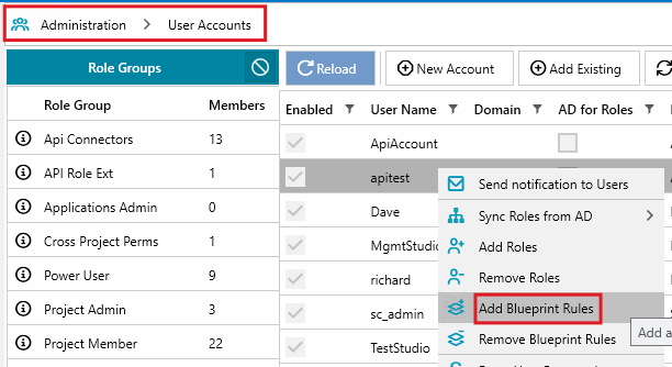 Note: Users must be assigned to standard Role Groups to define their access level for each module (e.g., Read-only). Blueprint Rules further restrict access to specified blueprints and modules.
