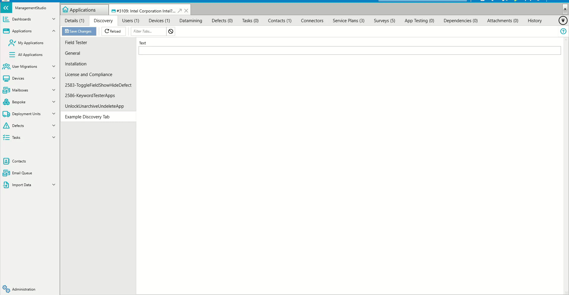 Custom Formssection and selectDiscoveryto open the Discovery management screen. - Click the