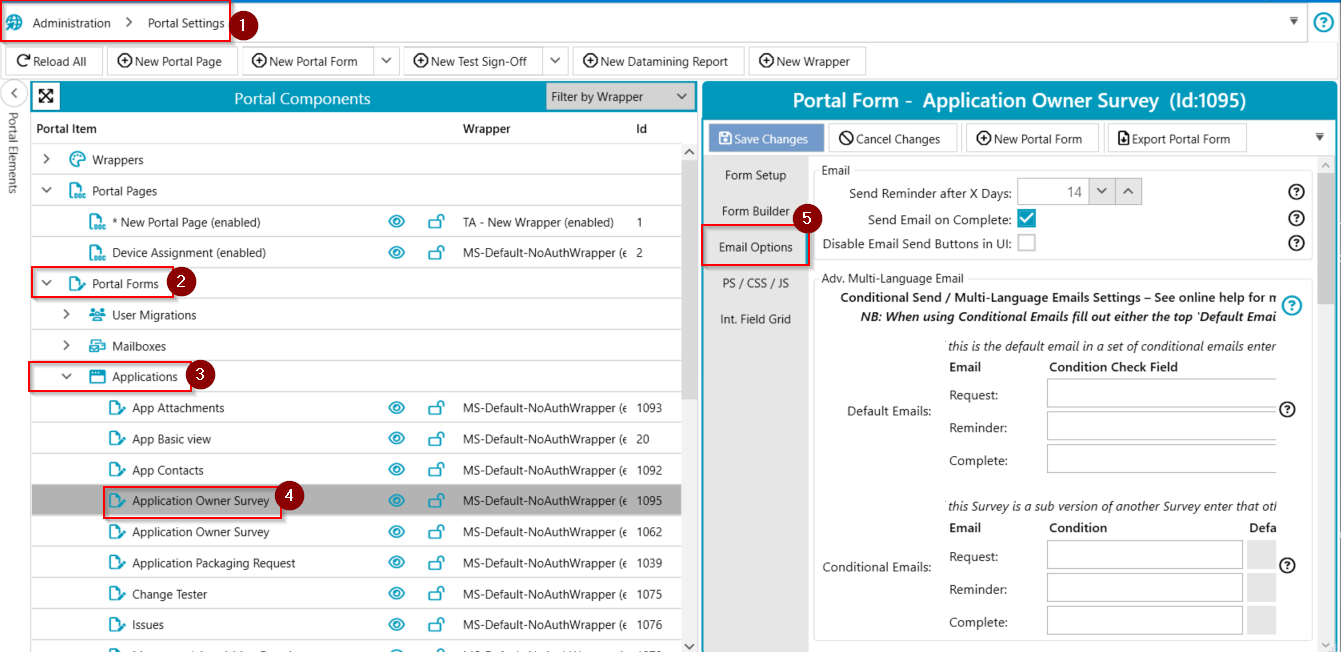 Portal Forms (Surveys) contain three email templates that are used at different stages of the process: