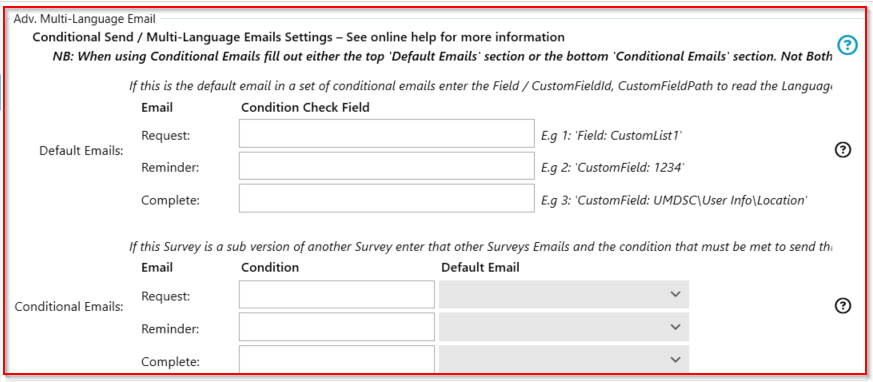 Conditional Send/Multi-language email settings - Please click here for more information.