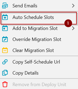 No Date BookedtoScheduled (1), and theirMigration Slot Startdate/time will update (2).