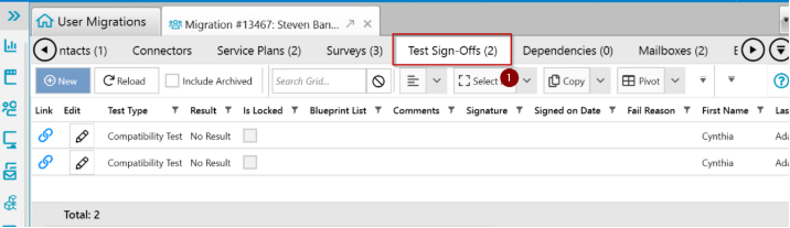 - The Test Sign-Offs main grid (2).