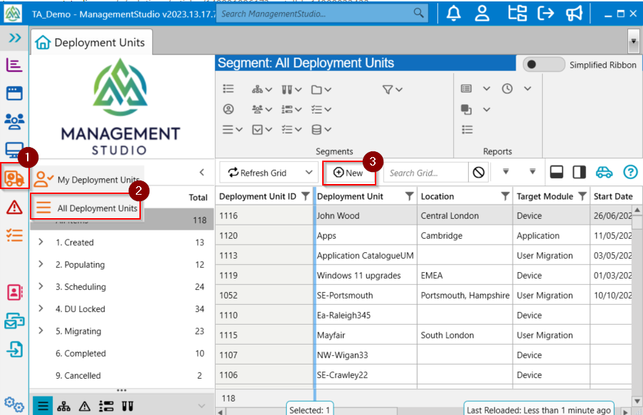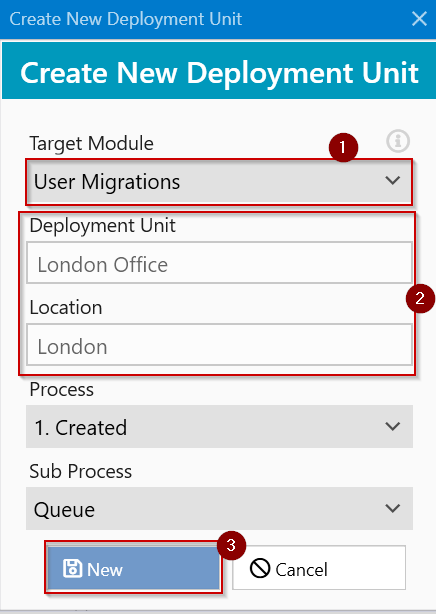 Deployment Units(1) →All Deployment Units (2)→New (3).