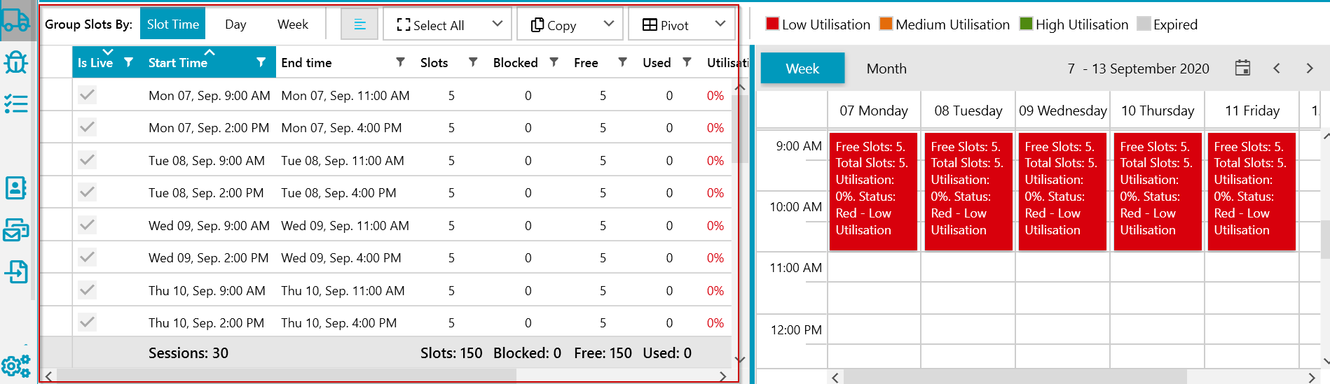 At the bottom of the screen, you will see a summary of configured sessions and available slots for this deployment unit.