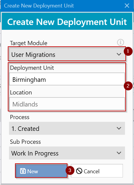 User Migrationsfrom the target module dropdown (1). - Enter the