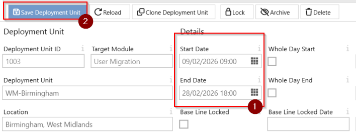 Start DateandEnd Datefor a 3-week period (1). For example, start at 09:00 on 02/02/2026 and finish on 28/02/2026 at 18:00.Click