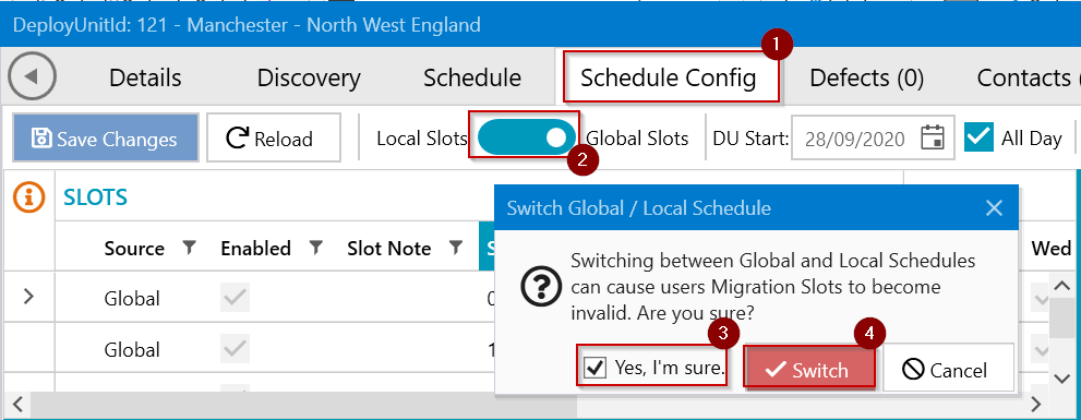 Toggleswitch to change fromGlobal SlotstoLocal Slots (2).In the confirmation dialog: