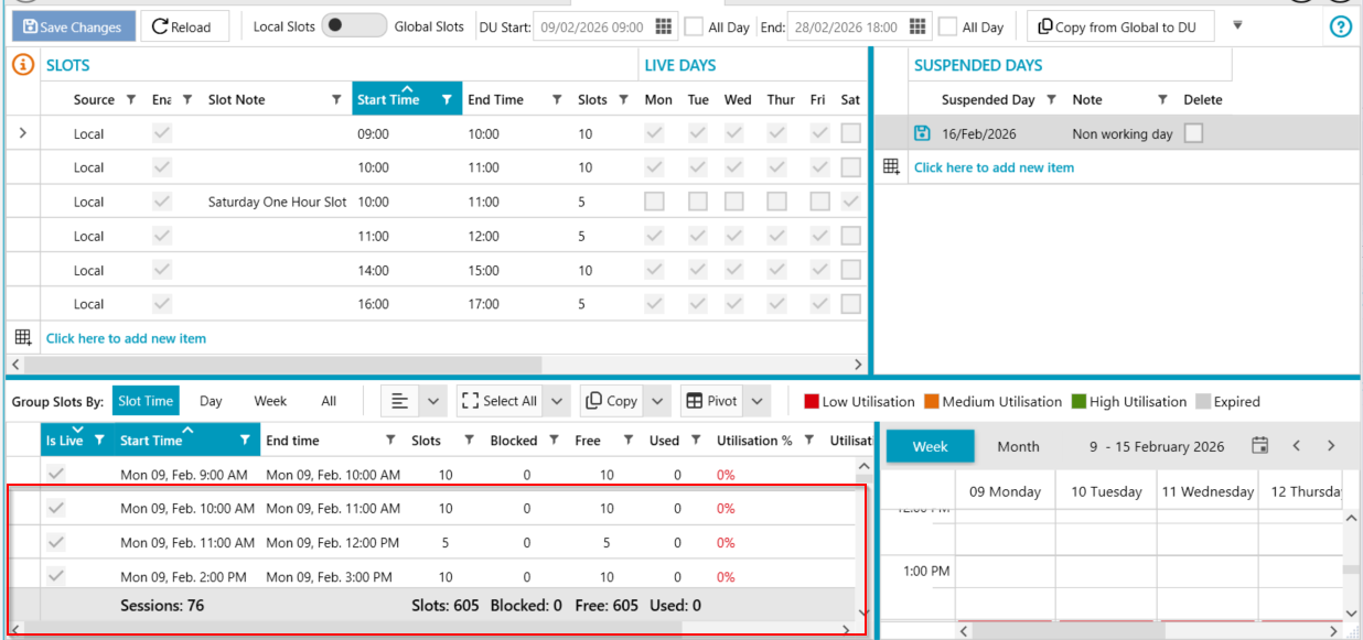 Slot Utilisationgrid at the bottom to see:- Available Slots