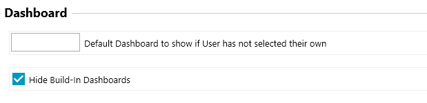 - Define the number of default dashboards displayed for users who have not customised their dashboard selection.