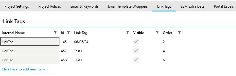 Configure link tags specific to the project (details will depend on your deployment requirements).
