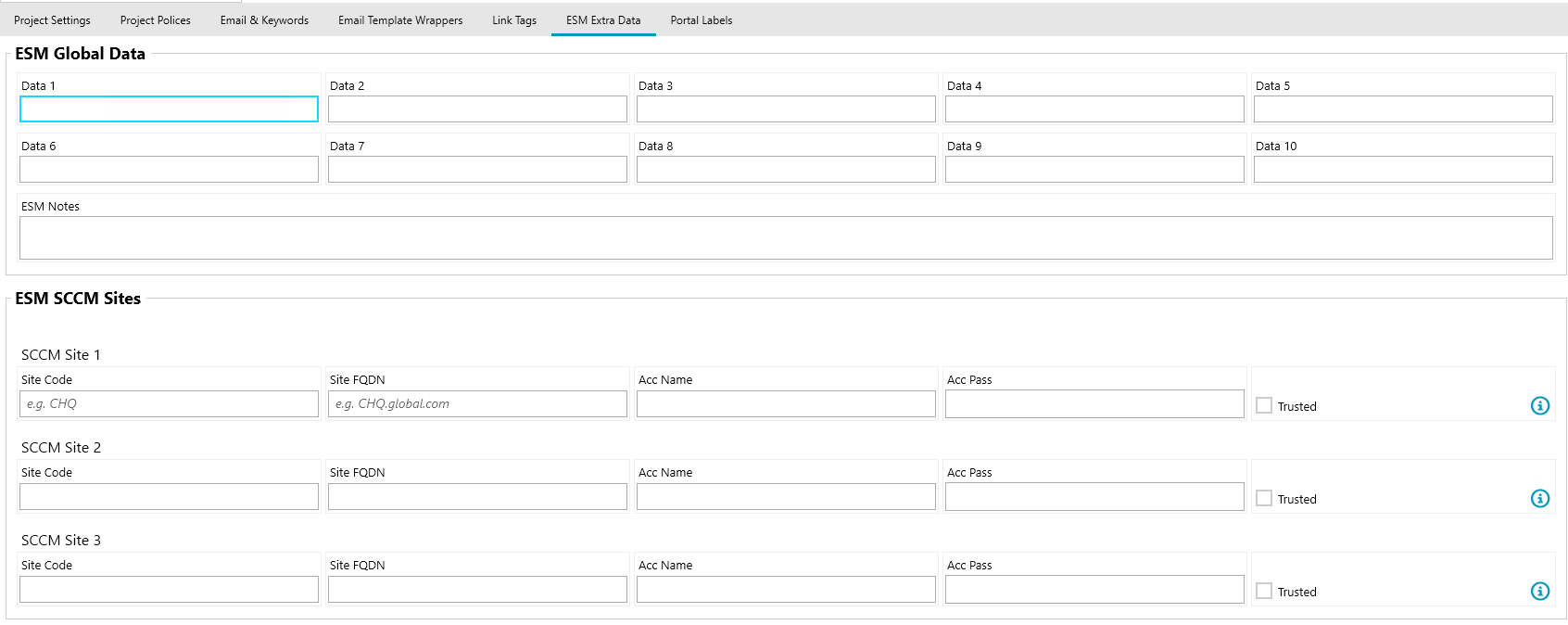 Configure up to ten ESM global data values, referenced in ESM plan criteria as [Data1] through [Data10].