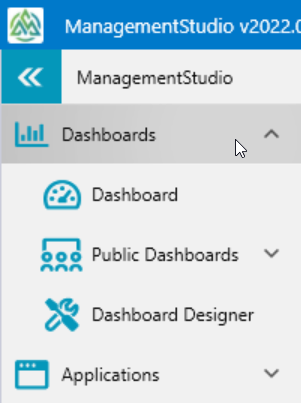 To access dashboard options, select the Dashboards menu entry on the left. This reveals three sub-menus: