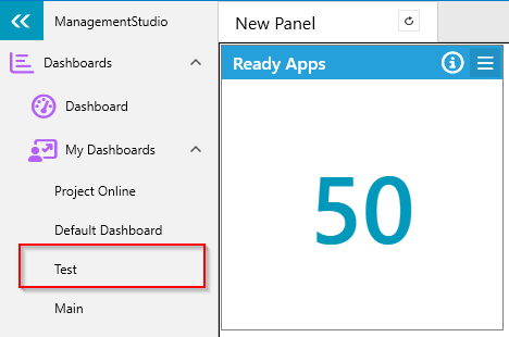 - Click Dashboard (1) -> My Dashboards (2) -> Test Dashboard (3) to view the new Dashboard.