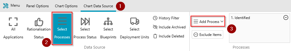 By default this chart will show users across all defined processes. If the chart should only display certain processes, the data source should be set as below: