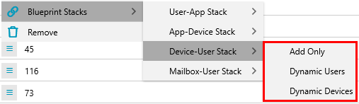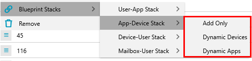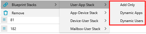 Blueprint Stacks automate the creation of links between items within the same Blueprint, streamlining the setup and management of core applications for users, devices, and mailboxes. For more information about managing core applications, see the article: How to Set Up Core Applications.