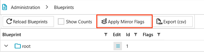 To apply the mirroring rules to existing application links, use the Apply Mirror Flags button in the toolbar.