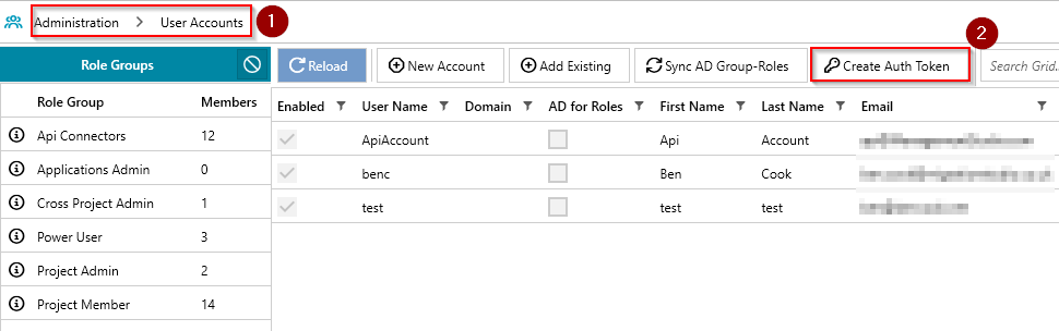 - Administration -> User Accounts (1).