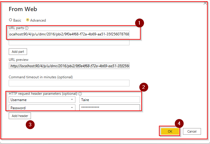 - In the From Web dialog, click on Advanced option.