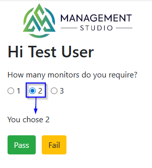- Add a Radio Button, this example uses one with three items: 1, 2, 3