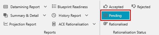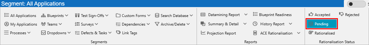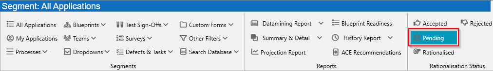 - In the Applications module, ensure visibility of applications requiring rationalisation. Typically, enable