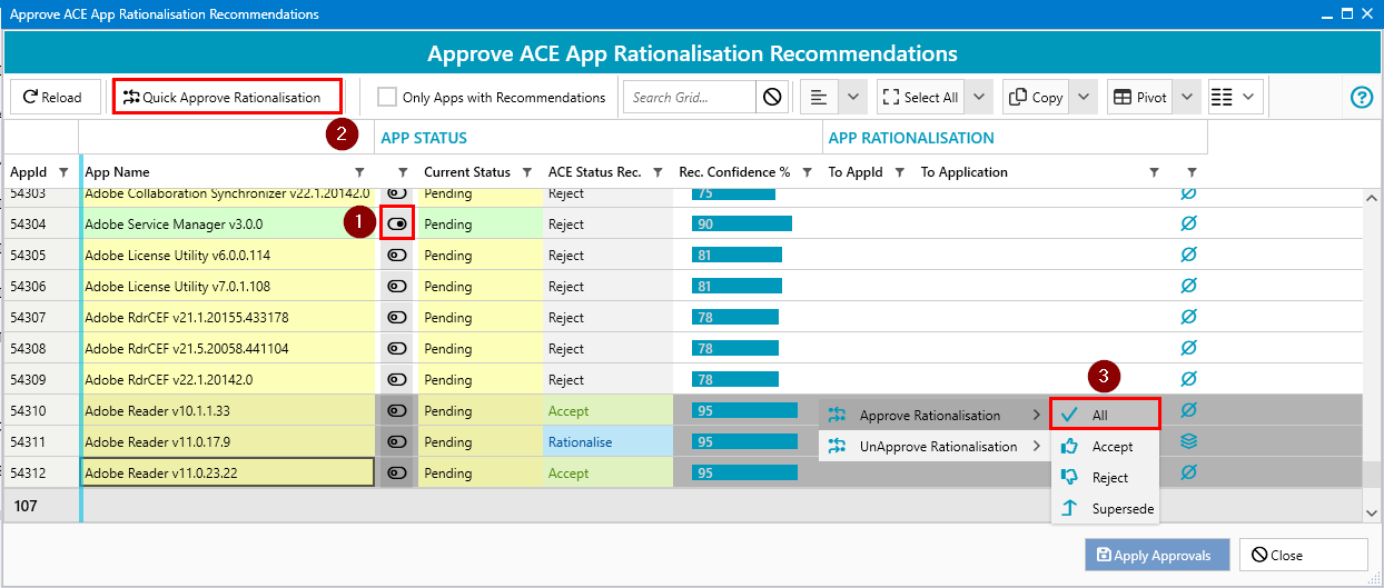 Quick Approve Rationalisation. - Alternatively, right-click and choose