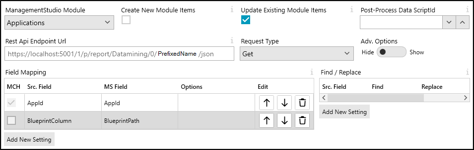 When configuring the REST API Importer to connect to ManagementStudio, consult the Endpoint Reports (for PowerBI) article for guidance on constructing REST queries.