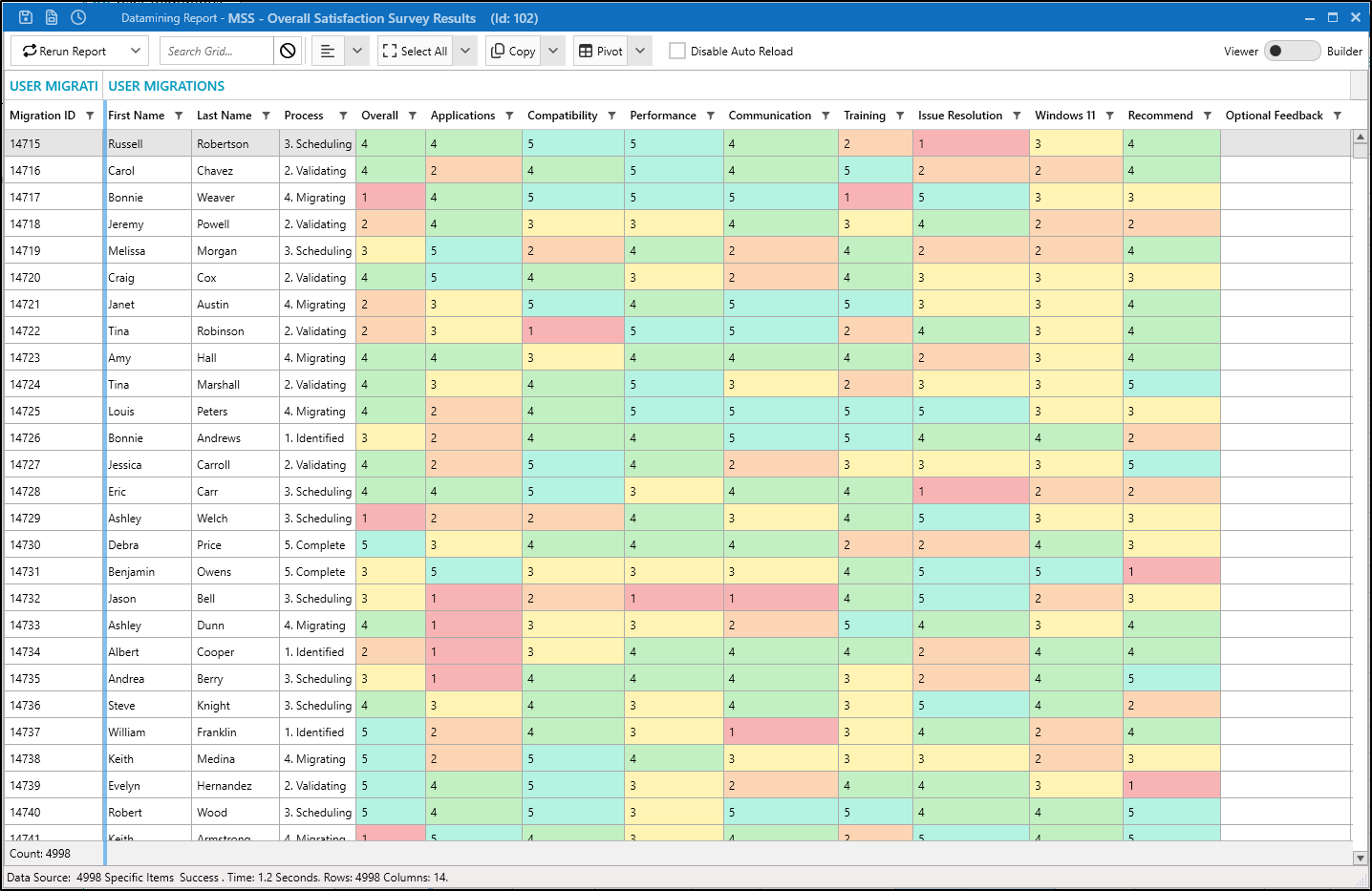 A Datamining Report that compiles all user survey responses into a single, easy-to-analyse report - ideal for monitoring trends, identifying pain points, and demonstrating performance metrics.