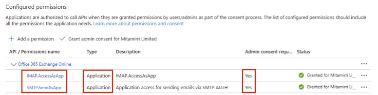 | Office 365 Exchange Online | Application | IMAP.AccessAsApp |