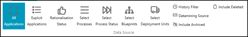 If 20 applications are selected in the Applications grid and a Datamining Report is run, the Data Source defaults to Explicit Module Items and includes only those 20 applications.